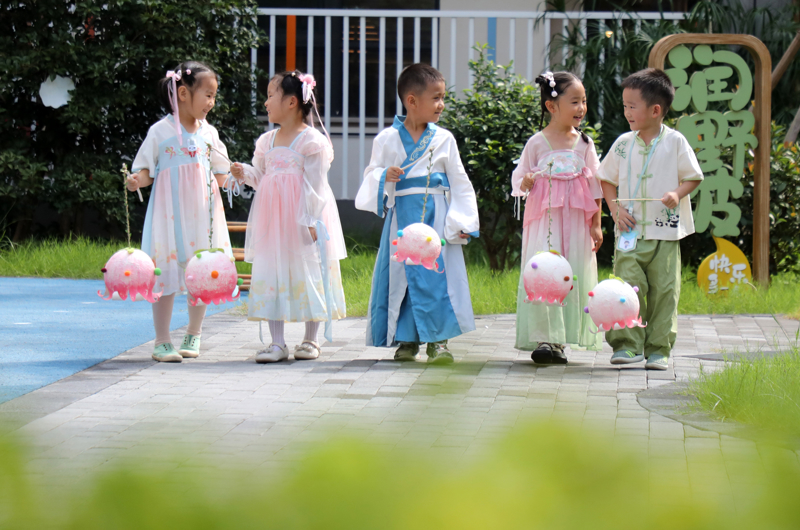 9月25日,江苏省苏州市姑苏区平润实验幼儿园,小朋友提着自制中秋花灯欢乐游园。\n 新华社 杭兴微 摄